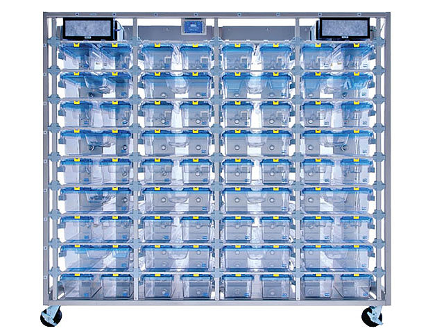 Designed for maximum capacity, this space-efficient housing solution supports up to 180 individually ventilated cages and houses up to 900 adult mice in a single mobile unit.